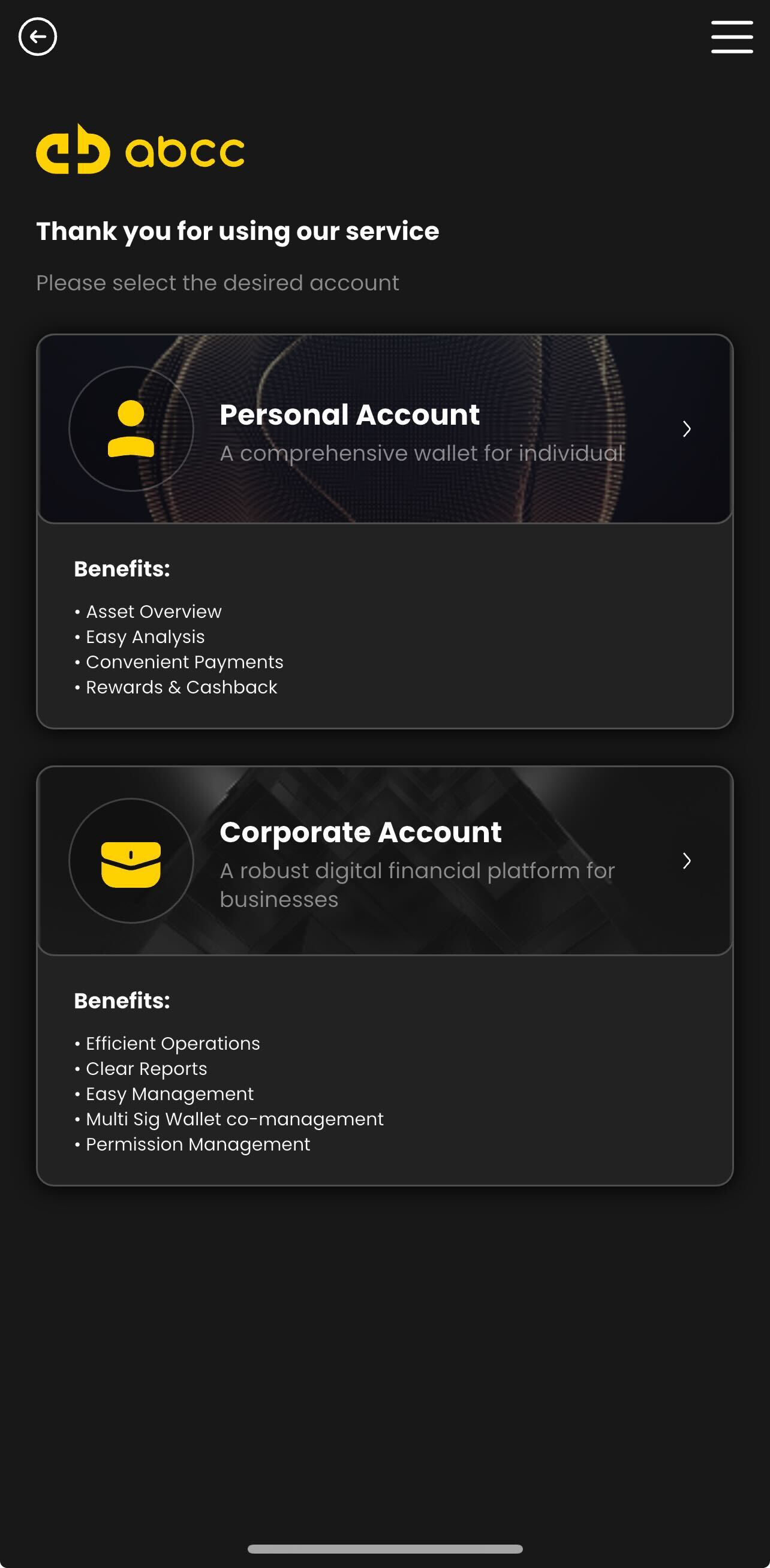 ii. That's all! You have successfully finished the entire registration process. You can now start using your ABCC Wallet!