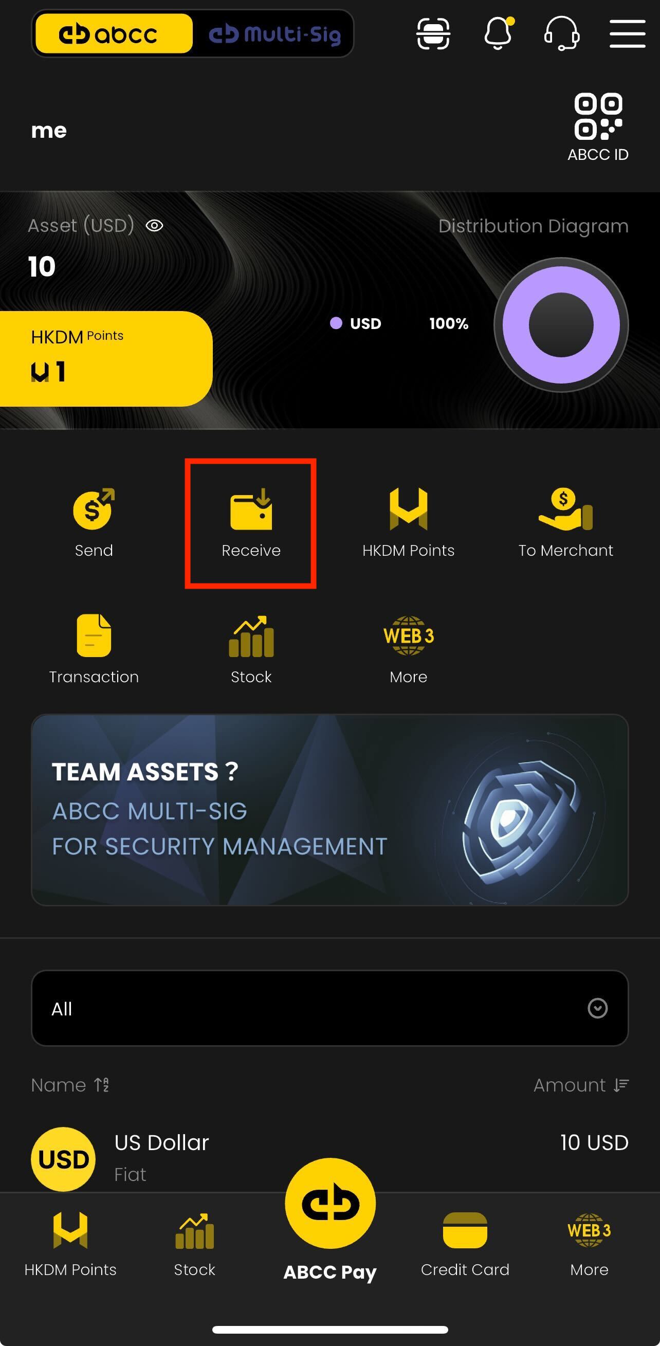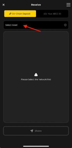 Deposit to Your ABCC ID: Your ABCC Wallet ID allows you to trade with other users who also have the ABCC Wallet. Simply share your ABCC Wallet QR code with other ABCC Wallet users. They can scan it to initiate transactions directly with you.