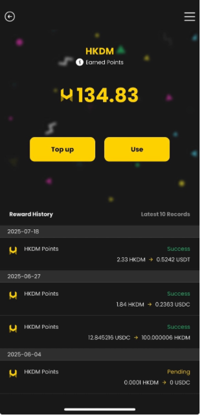 i. Click "Use" to redeem US Dollar or USDC or USDT using HKDM.