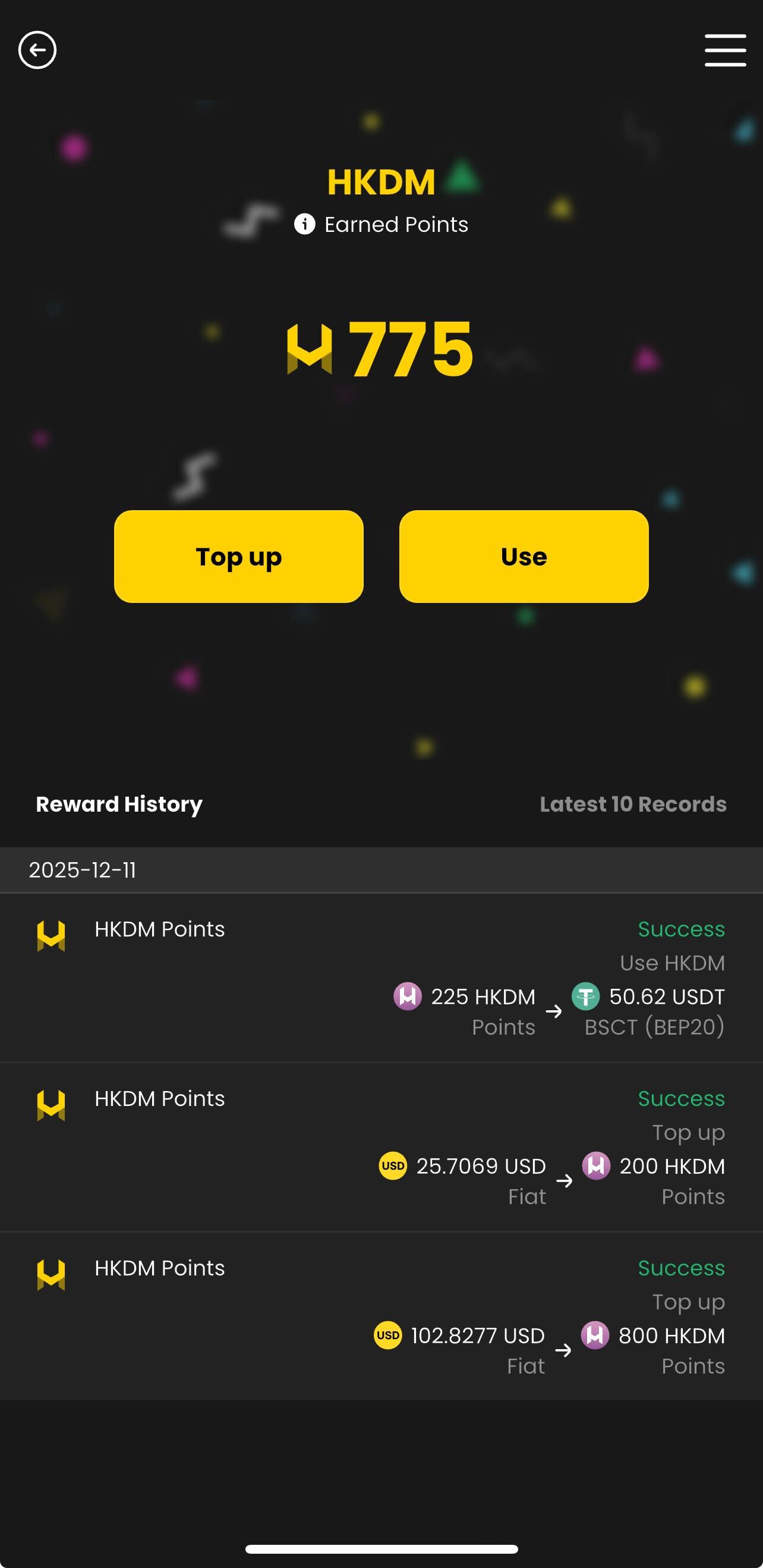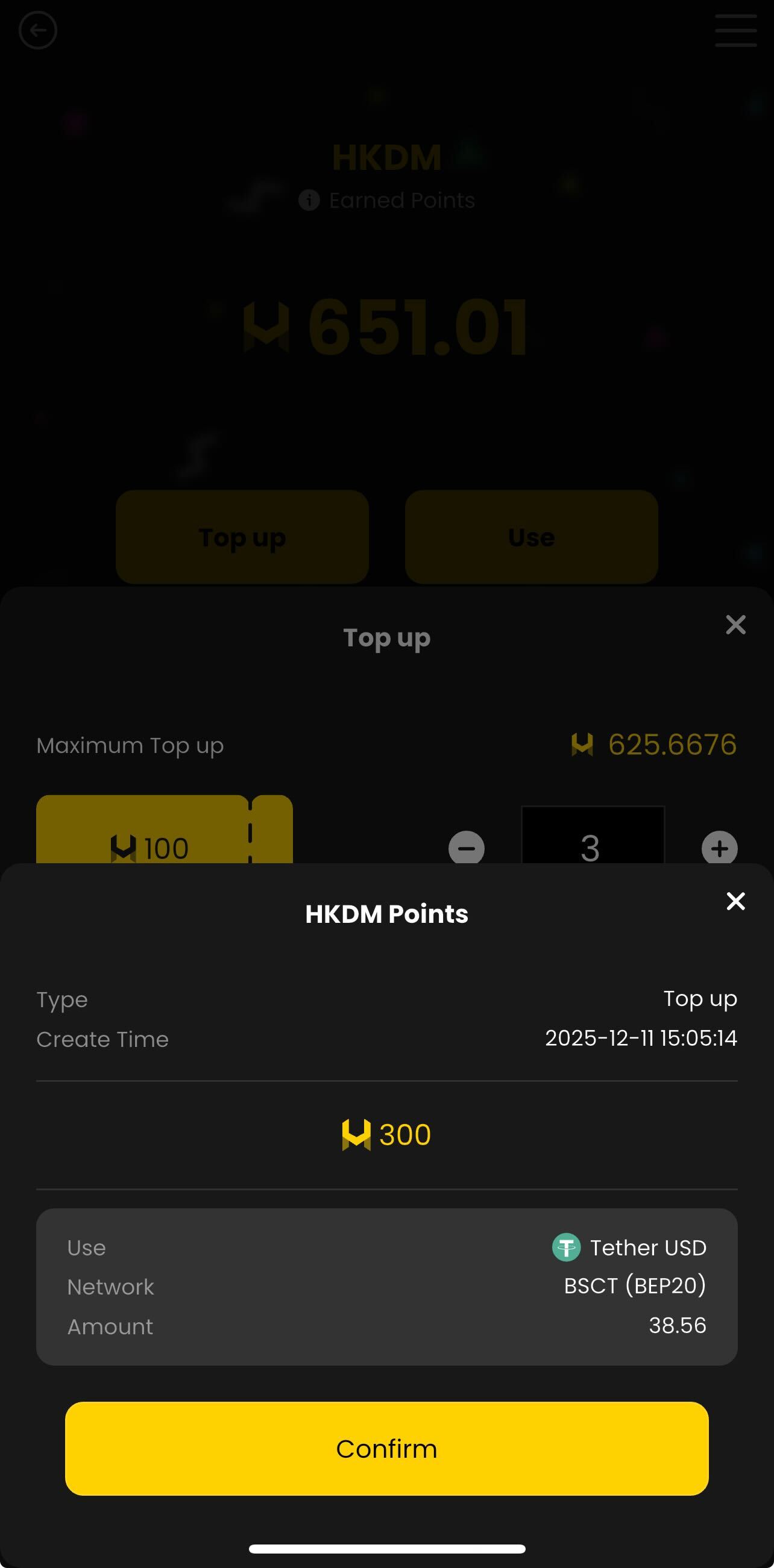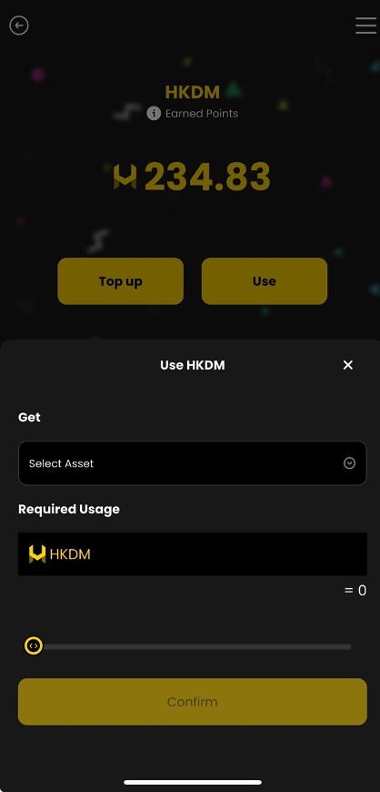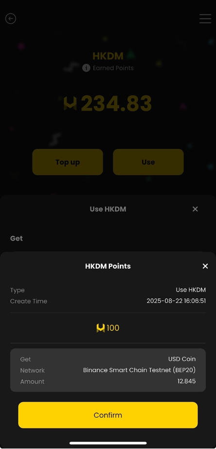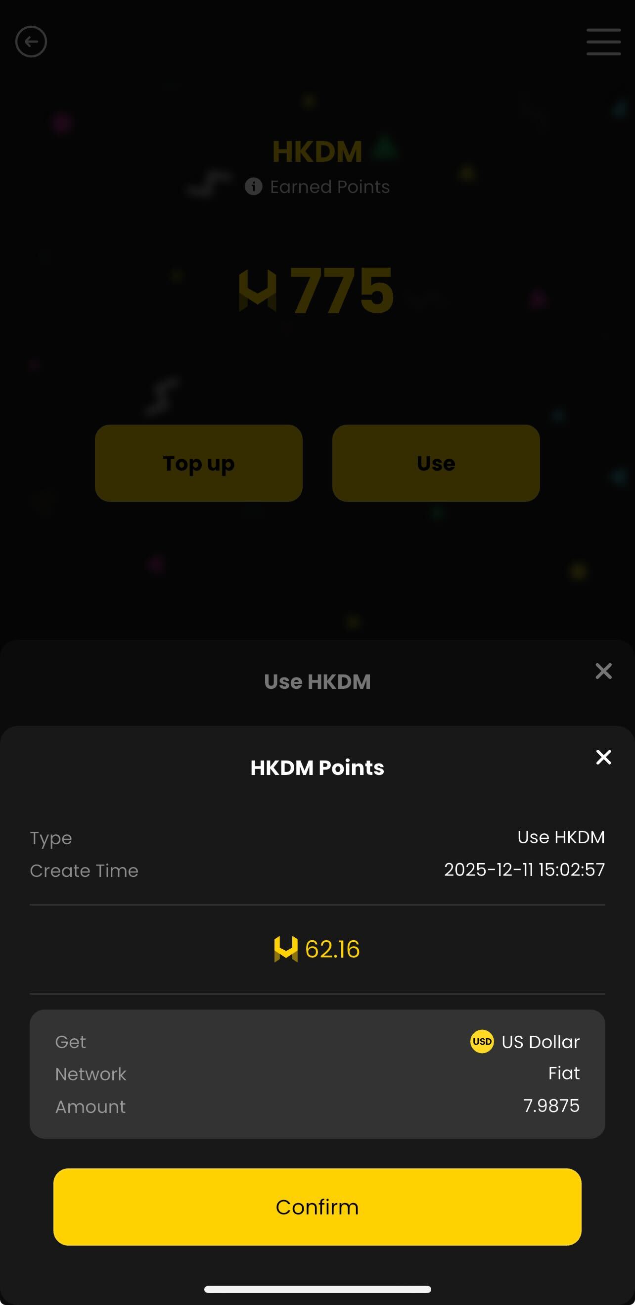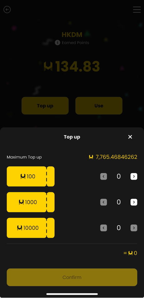 iii. After selecting the desired amount of HKDM points, press "Confirm". Then, use your PIN code or biometric verification for double confirmation. Once completed, the system will display a message to inform you.
