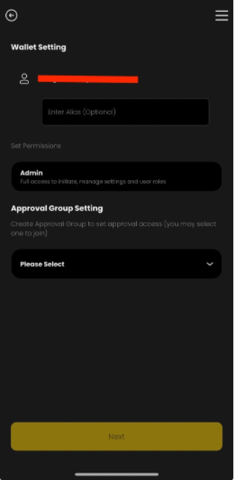 Please select the "Approved Group Setting" and create an approval group, which is used to manage and categorize the group members. Once you have created and selected an approval group, you can click "Next".
