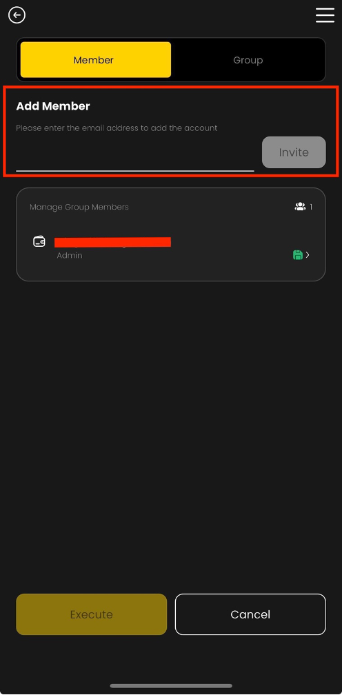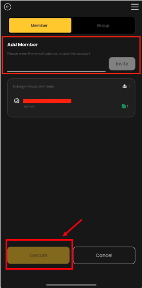 iv. After the users accept your invitation, they will become members of your Multi-Sig Wallet. Then, please click "Execute" to complete your Multi-Sig Wallet setup. *If you want to add more members, please follow Step 2.i to iii.