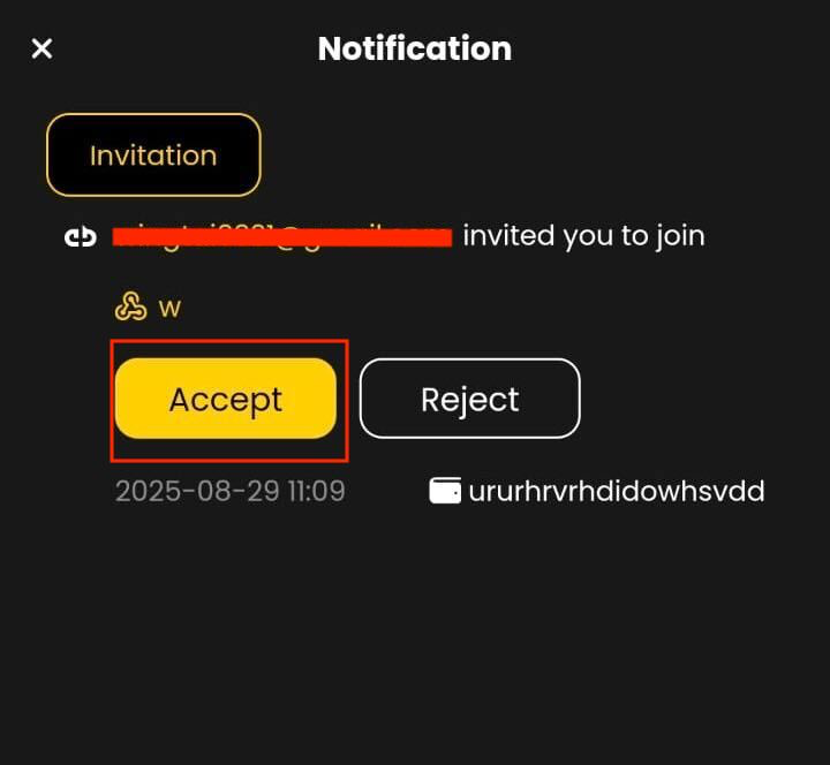 iii. The user you invited will receive an invitation, and they can view it by clicking the notification in the top right corner. Then, they need to click "Accept".