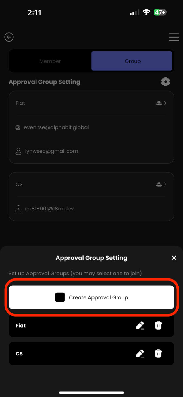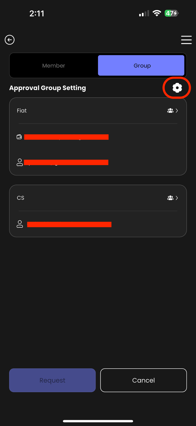 i. If you want to categorize your members into different approval groups, you can go to the "Group" page and click the settings button in the top right corner.