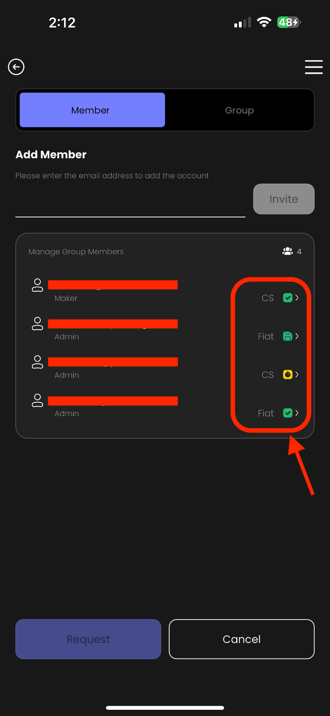 iii. Once you have created a new approval group, you can go to the "Member" page and select which members you want to move to the new approval group. *Each member can be assigned to only one approval group.