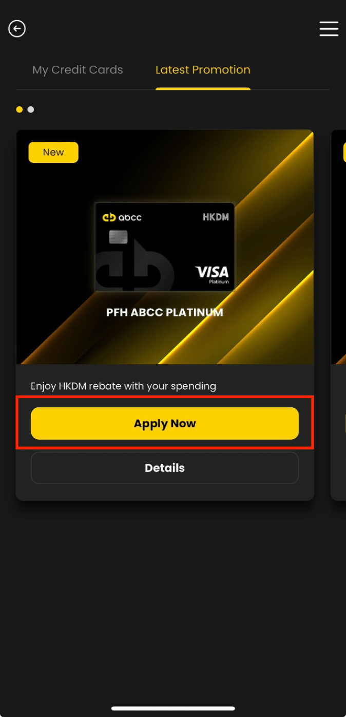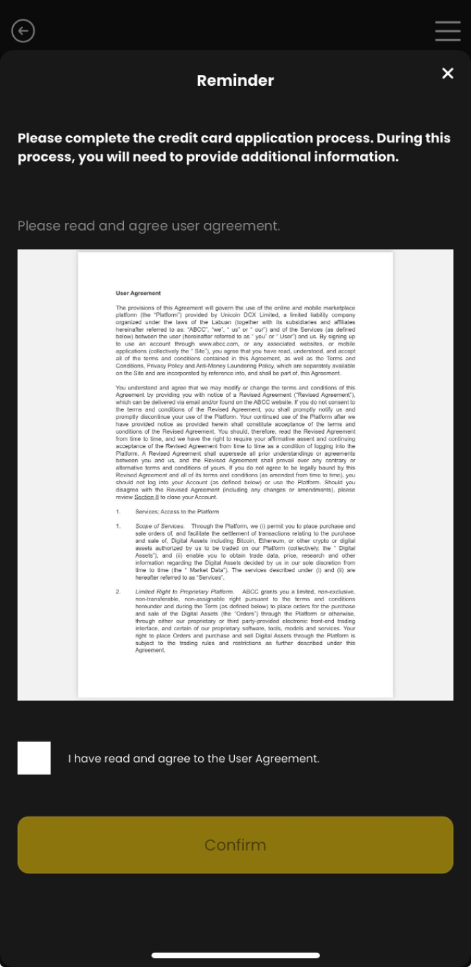 Hello! In this instruction, we will show you how to apply for a credit card on ABCC Wallet. Before applying for a credit card, please complete your KYC.