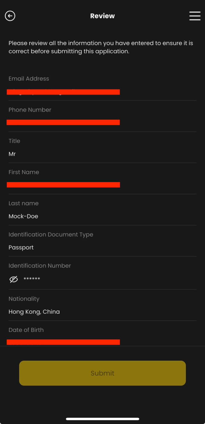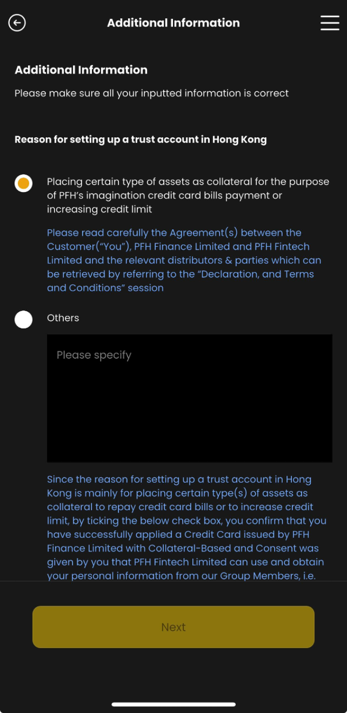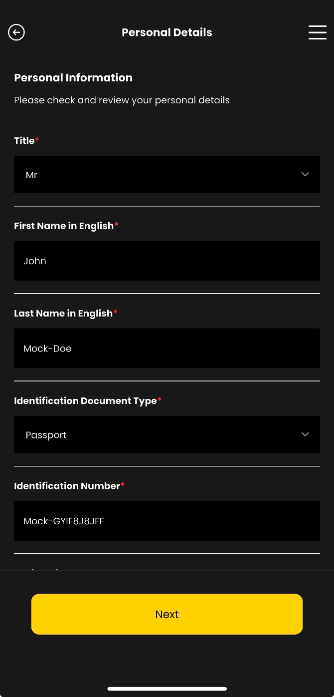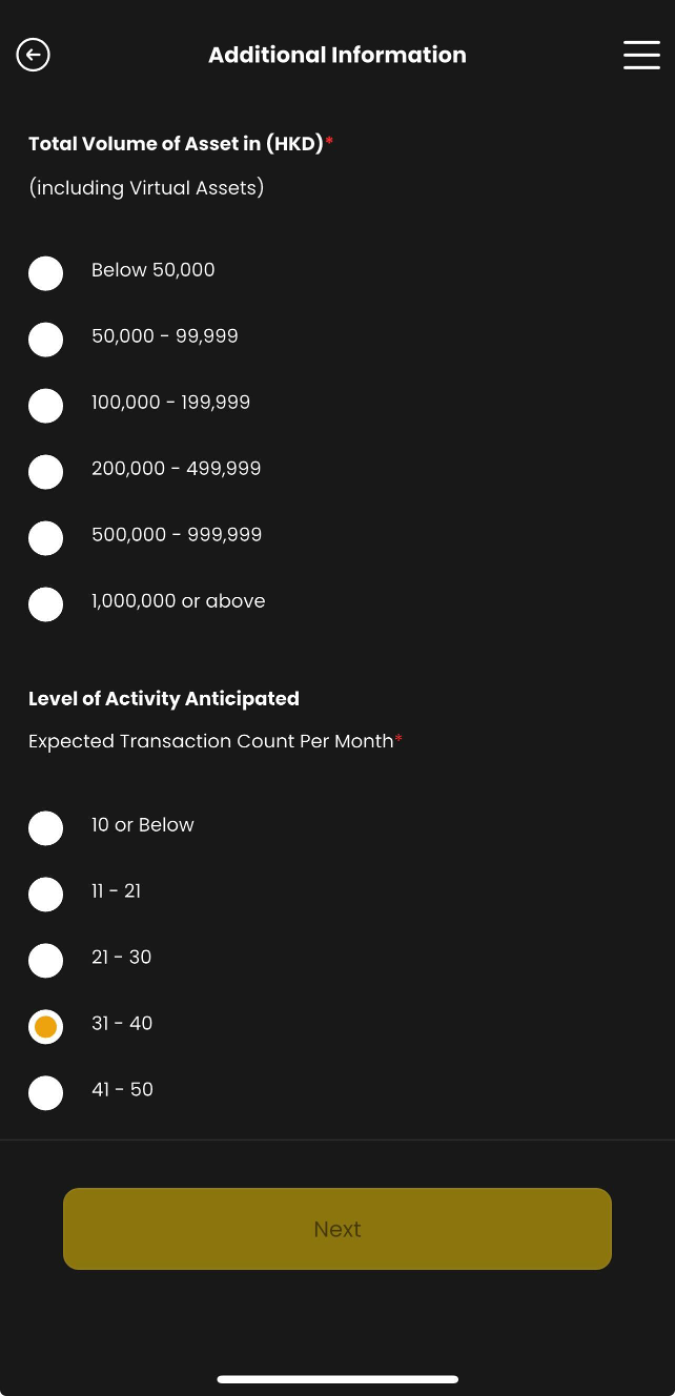 i. Please review your personal information, which is pre-filled according to your KYC record, and then click "Next."