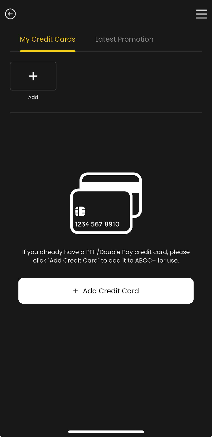 *If you have a PFH / Double Pay credit card already, you can also add it to ABCC Wallet for management.