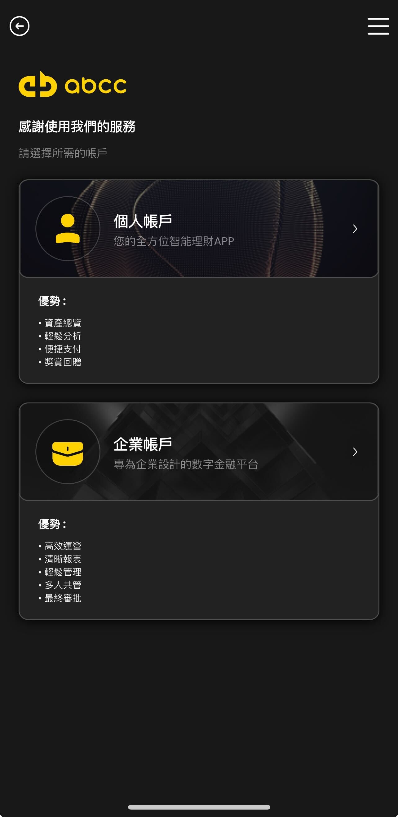 ii. 选择注册帐户类别 个人帐户或企业帐户