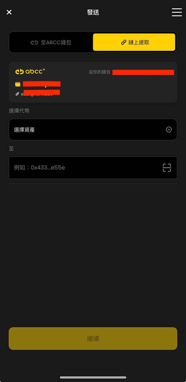 i. 预设情况下会选择发送到他人的ABCC 钱包,您可以透过输入或扫描他人的 ABCC ID 将代币发送到他人的 ABCC 钱包。