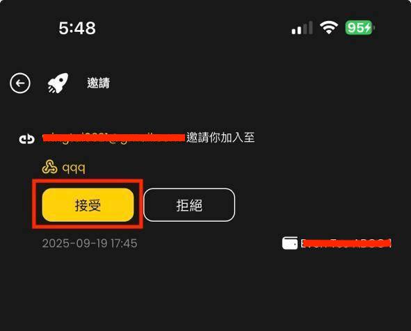 iii. 您邀请的用户将收到邀请,他们可以透过点击右上角的通知查看邀请。然后,他们需要点击「接受」。