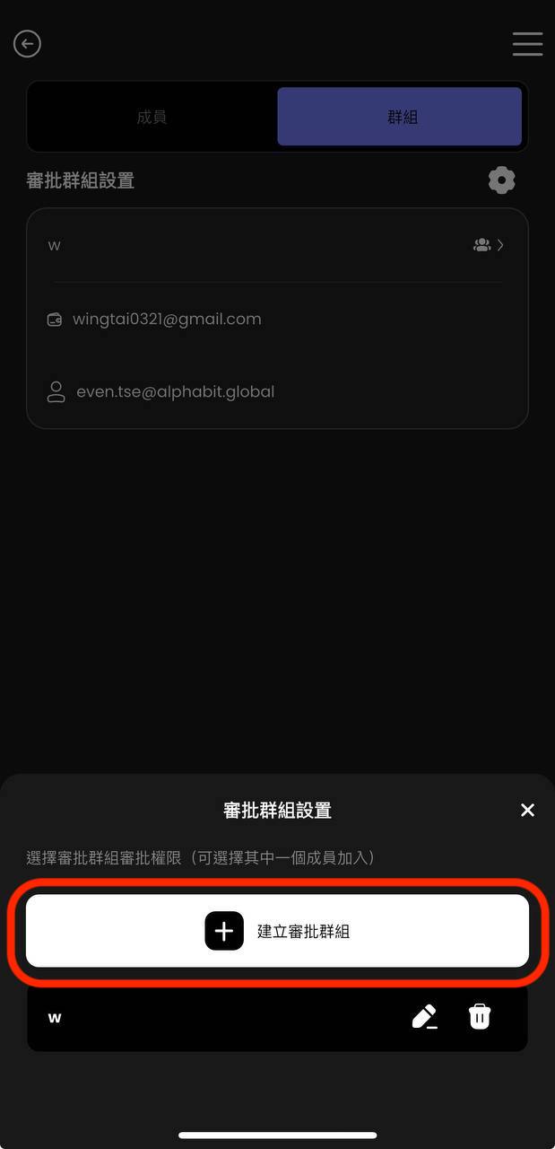 ii. 点选「建立审批群组」并为其命名。