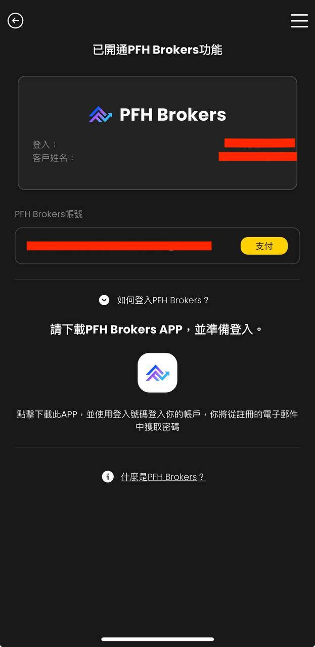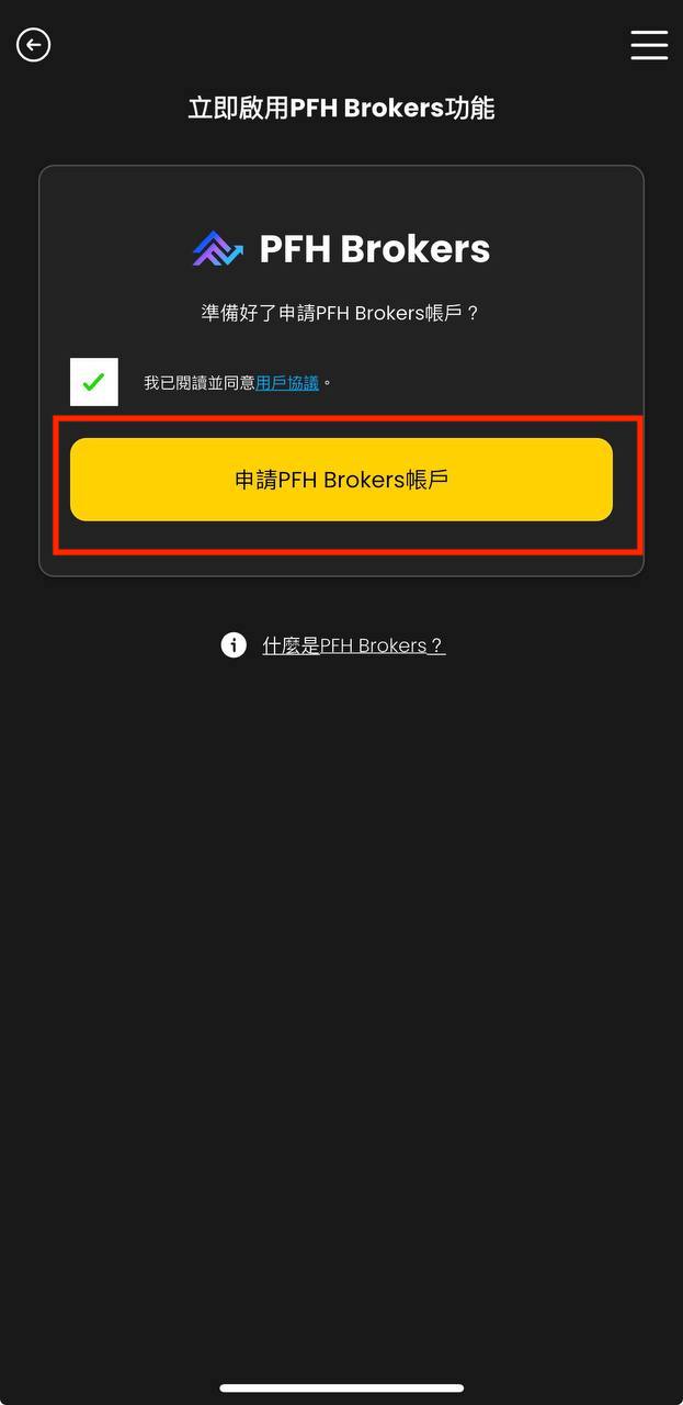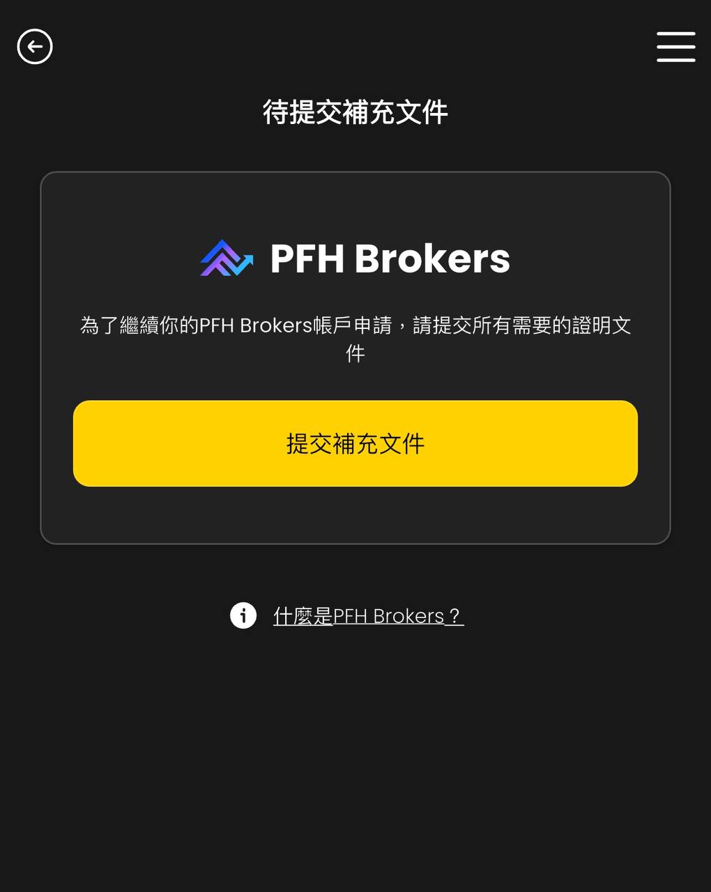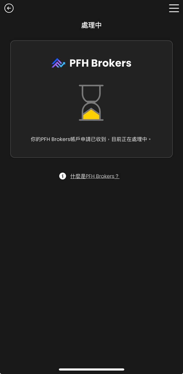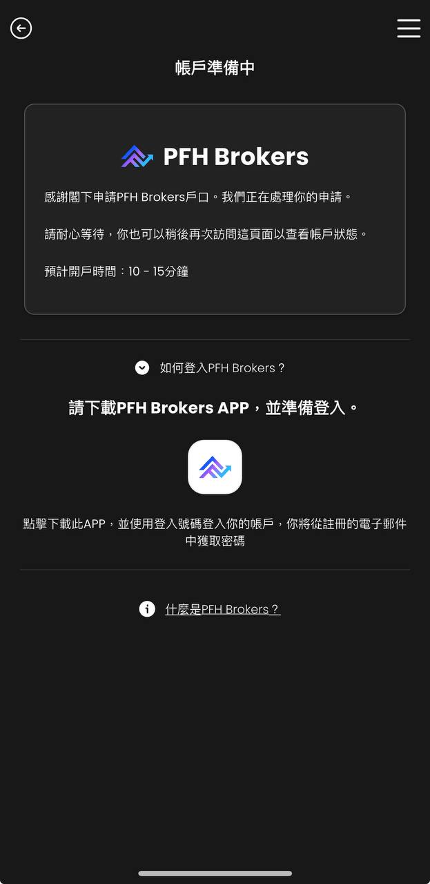 批准完成后,您将收到通知并看到您的 PFH Brokers 帐号。