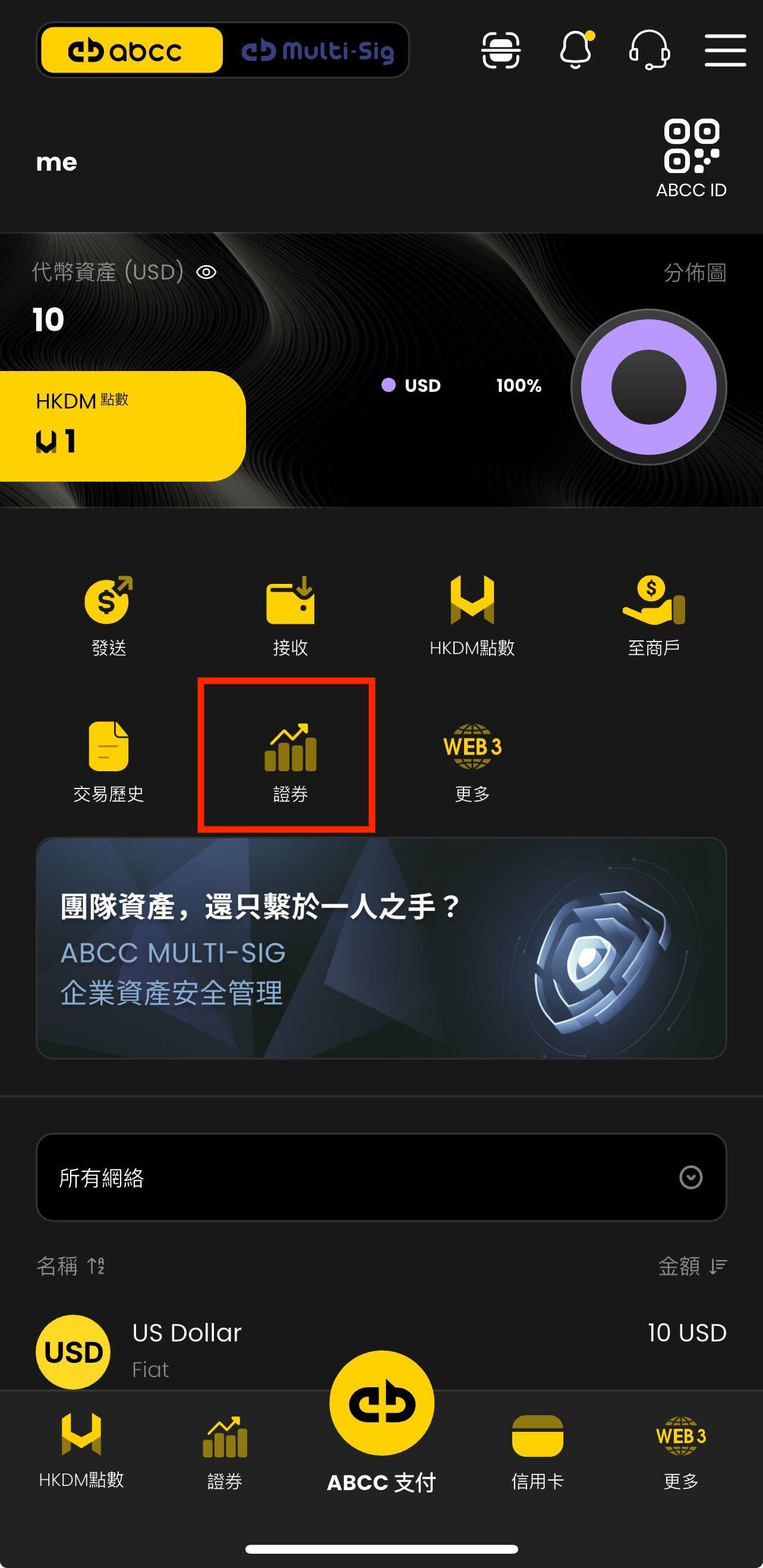 您好!本指南将向您展示如何在 ABCC 钱包上开立证券帐户。 *需要 标准 认证。