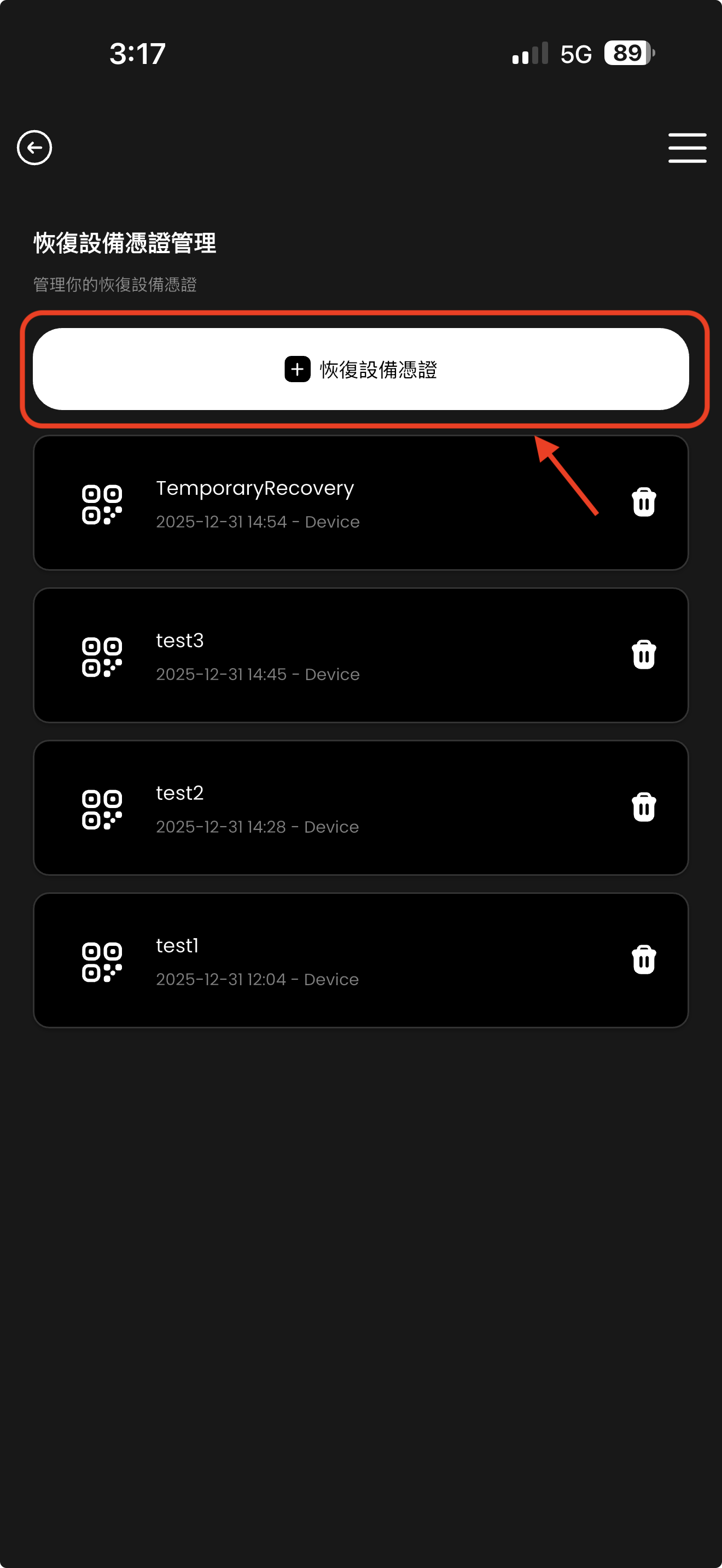 第1B步:登入帐号后产生另一个恢复设备凭证