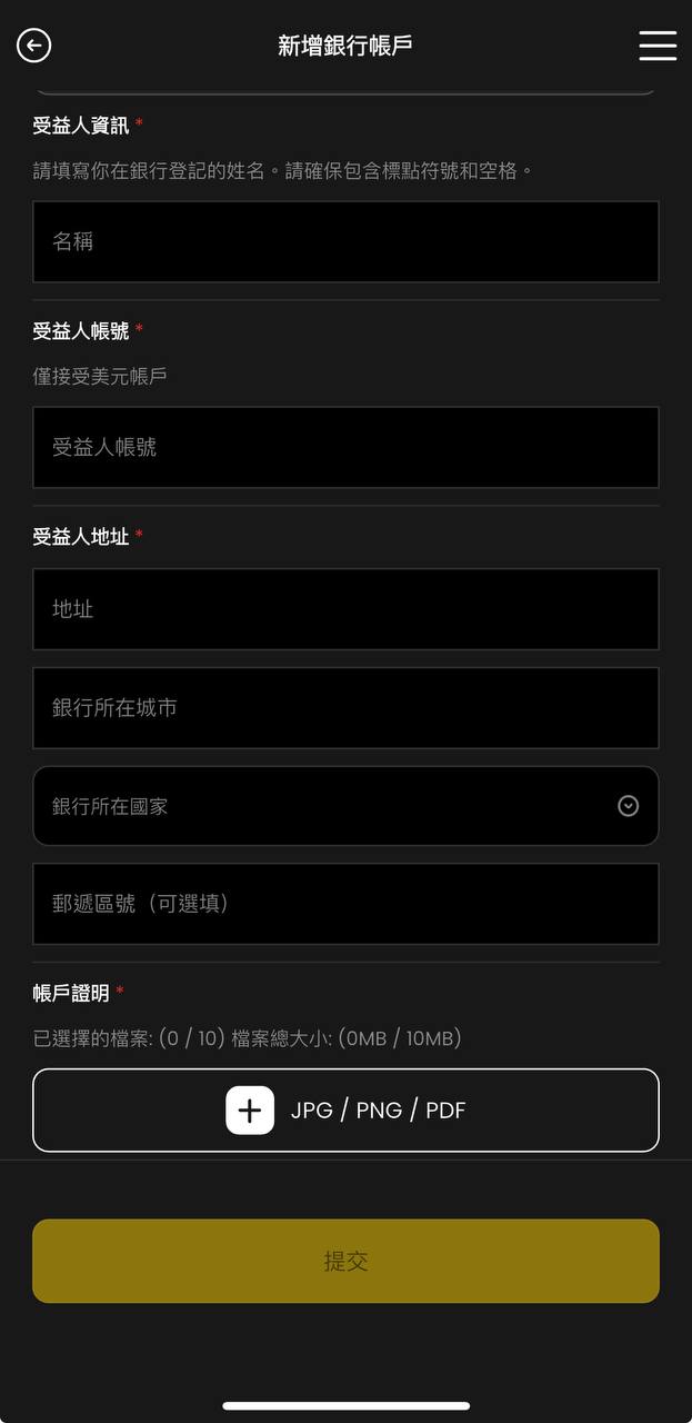 首次選擇銀行帳戶時,您可以點選「新增銀行帳戶」。