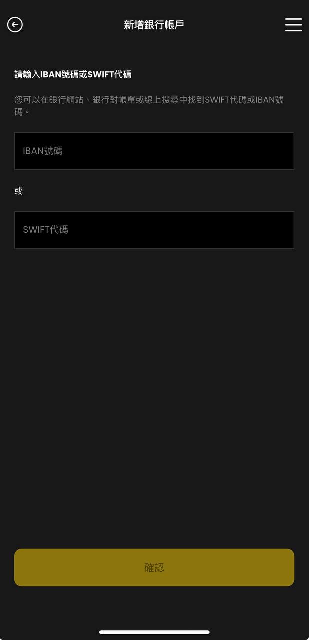 i. 輸入您的銀行 IBAN 或 SWIFT 代碼。