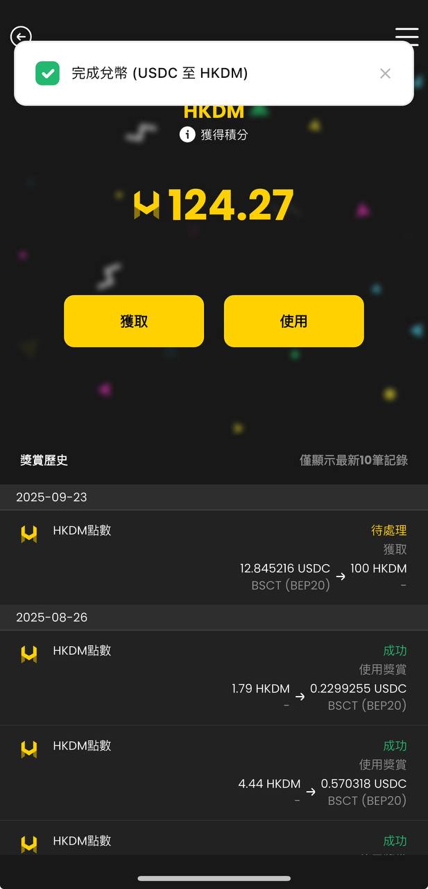 i.點選「使用」即可使用 HKDM 兌換 US Dollar或 USDC 或 USDT。