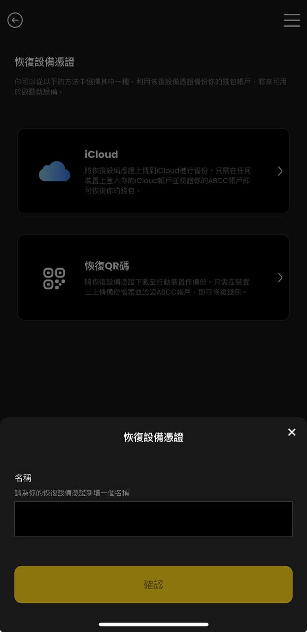 重要提示: 如果恢復設憑證遺失,ABCC 錢包將無法恢復您的資產。請務必妥善保管。