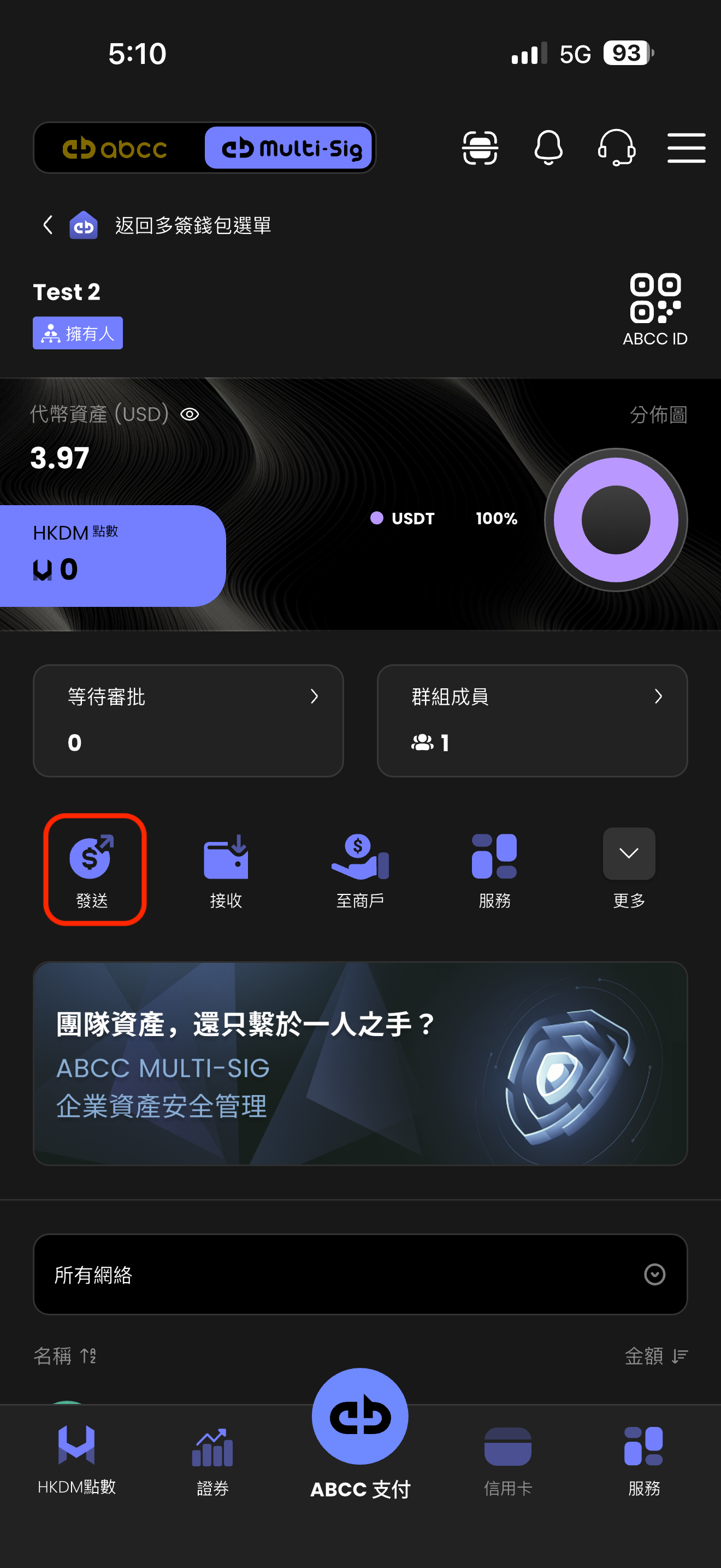 步驟 2:選擇將代幣發送到其他用戶的 ABCC 錢包或進行鏈上提幣