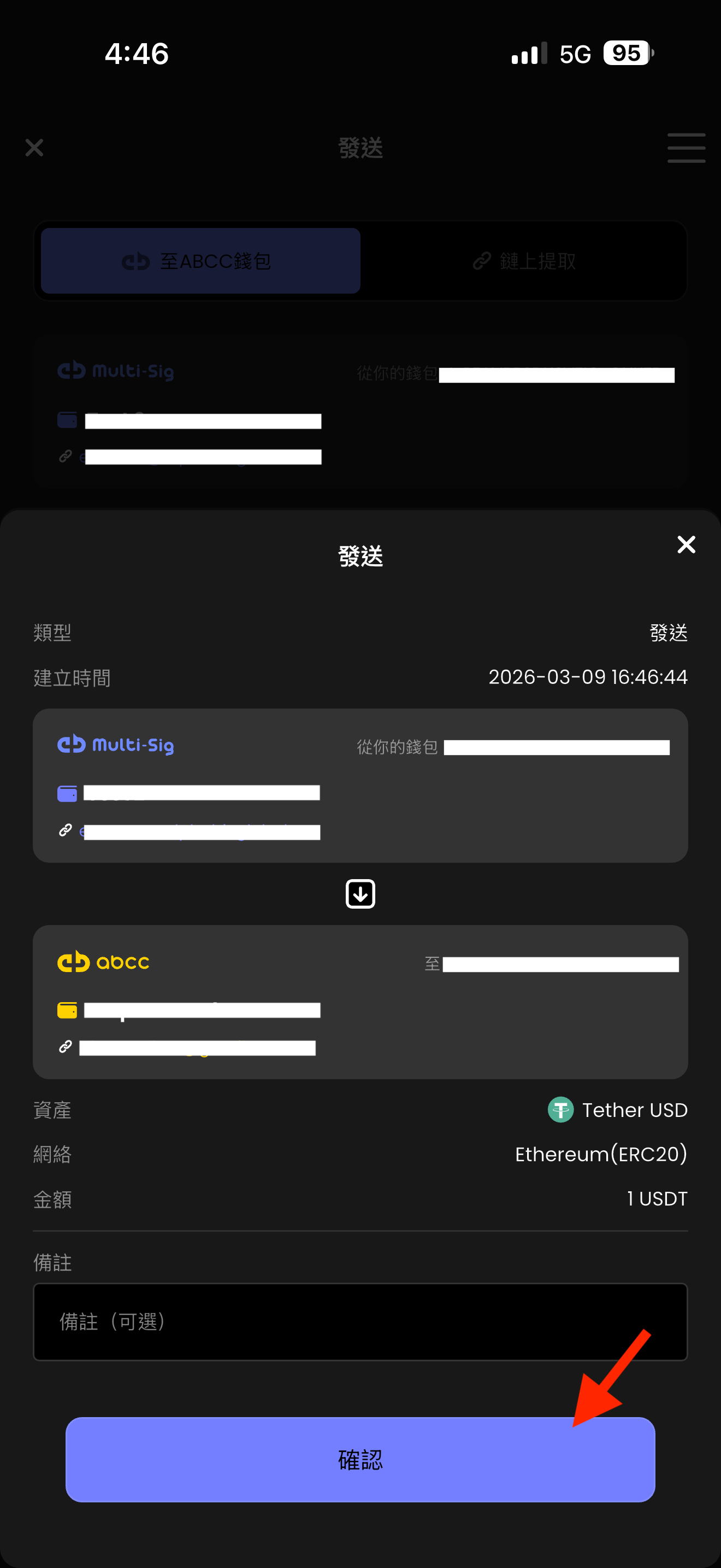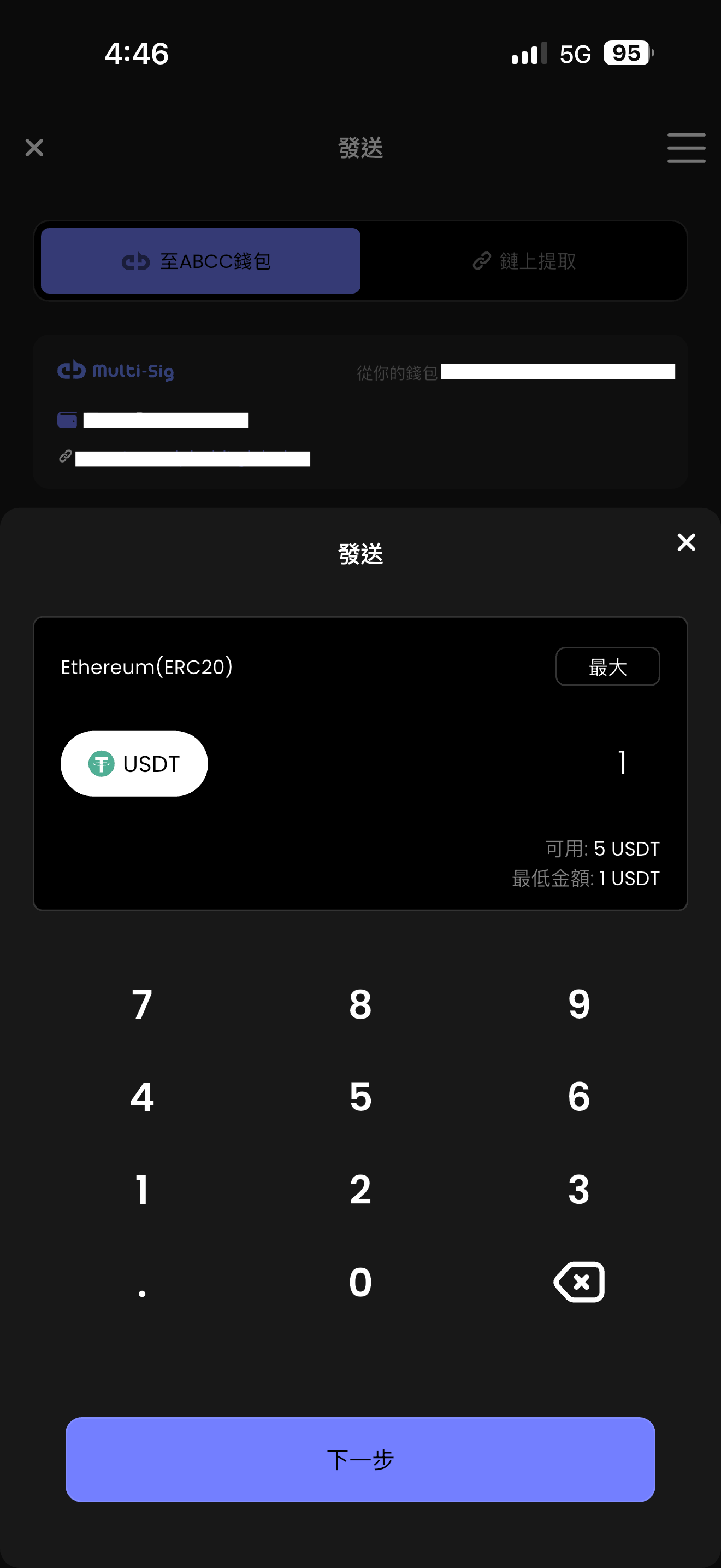 iii. 輸入金額後,您可以點選「下一步」查看發送詳情。如果沒有任何問題,請點選「確認」提交。